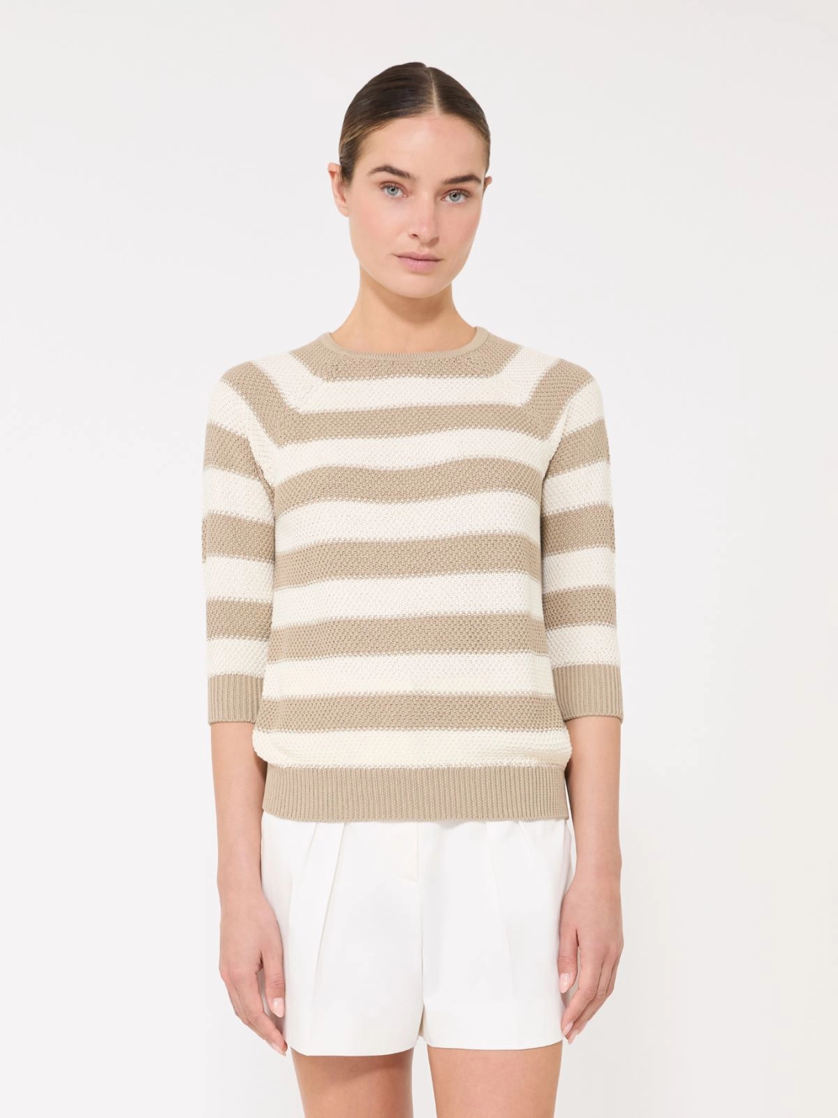 - Pure cotton yarn sweater with an all-over moss-knit pattern
