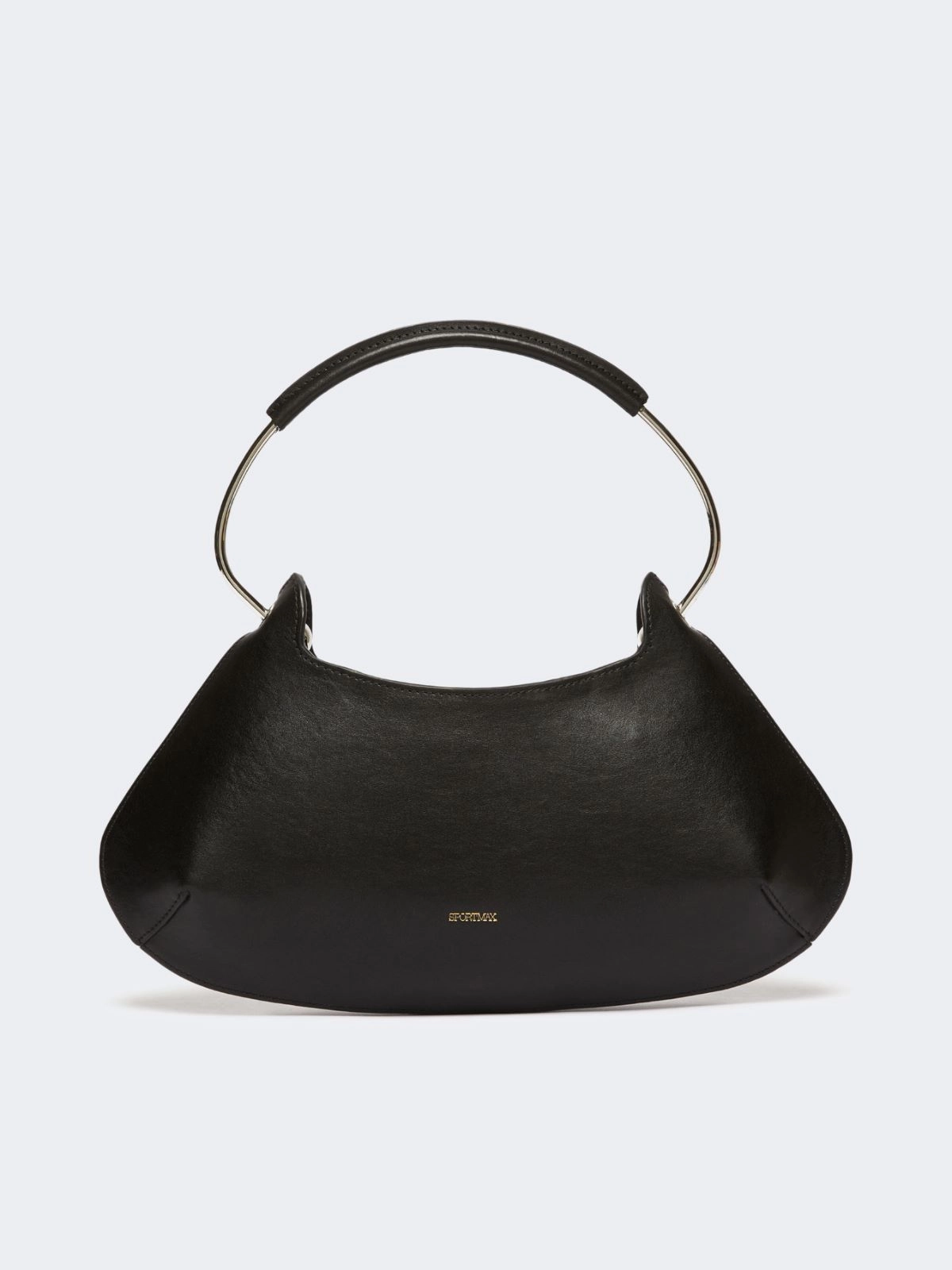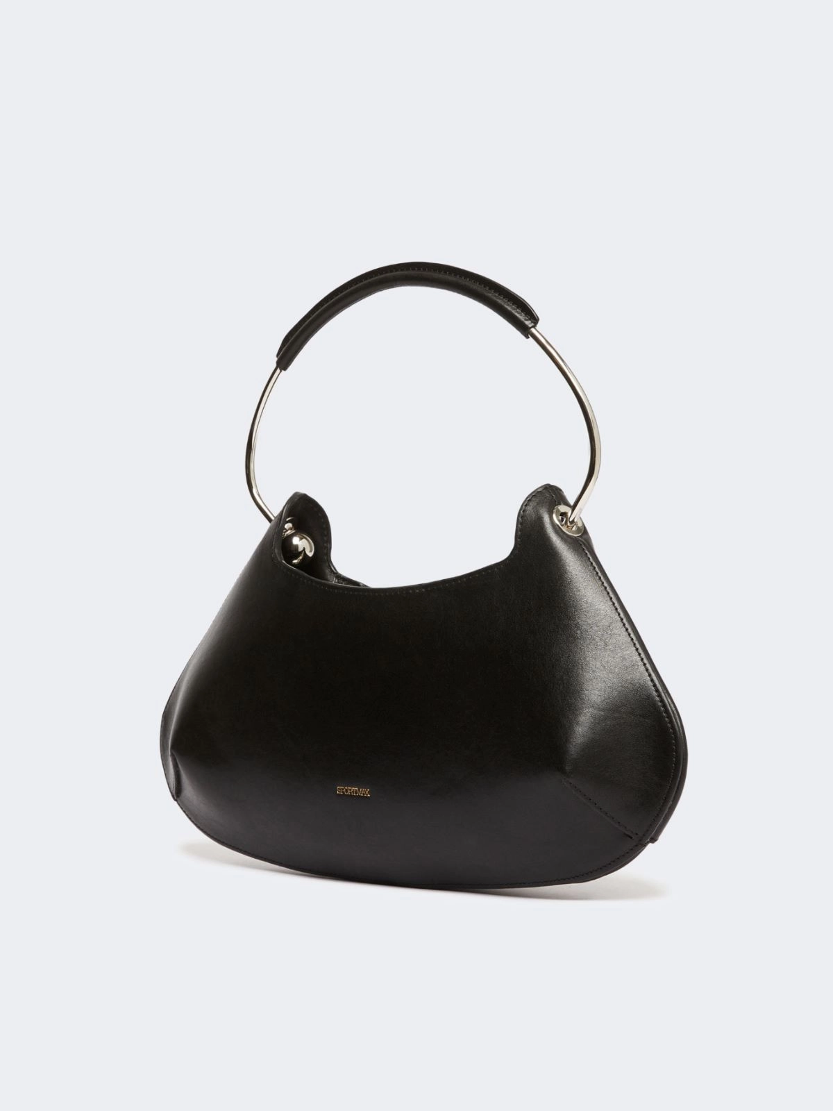 Medium-sized Caju bag with semi-gloss leather panels and golden front logo. The handle is completed by the iconic ball detail, recalling the shape of piercings. Lined interior completed by a flat pocket.
