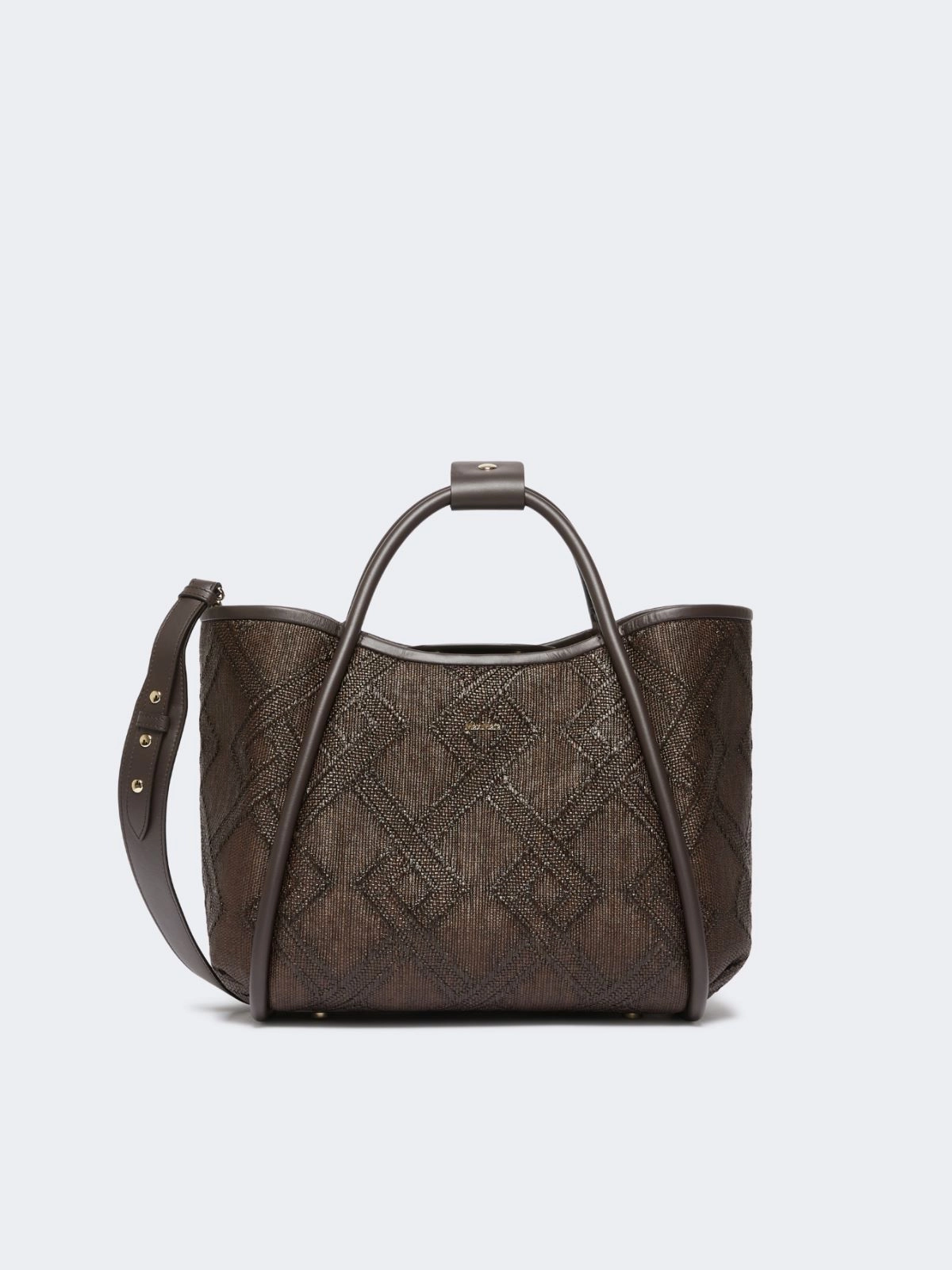 - Raffia-effect fabric bag with 3D-effect diamond pattern