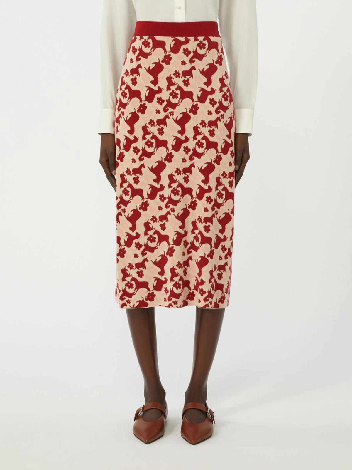 Midi pencil skirt, embellished with an all-over jacquard knit.