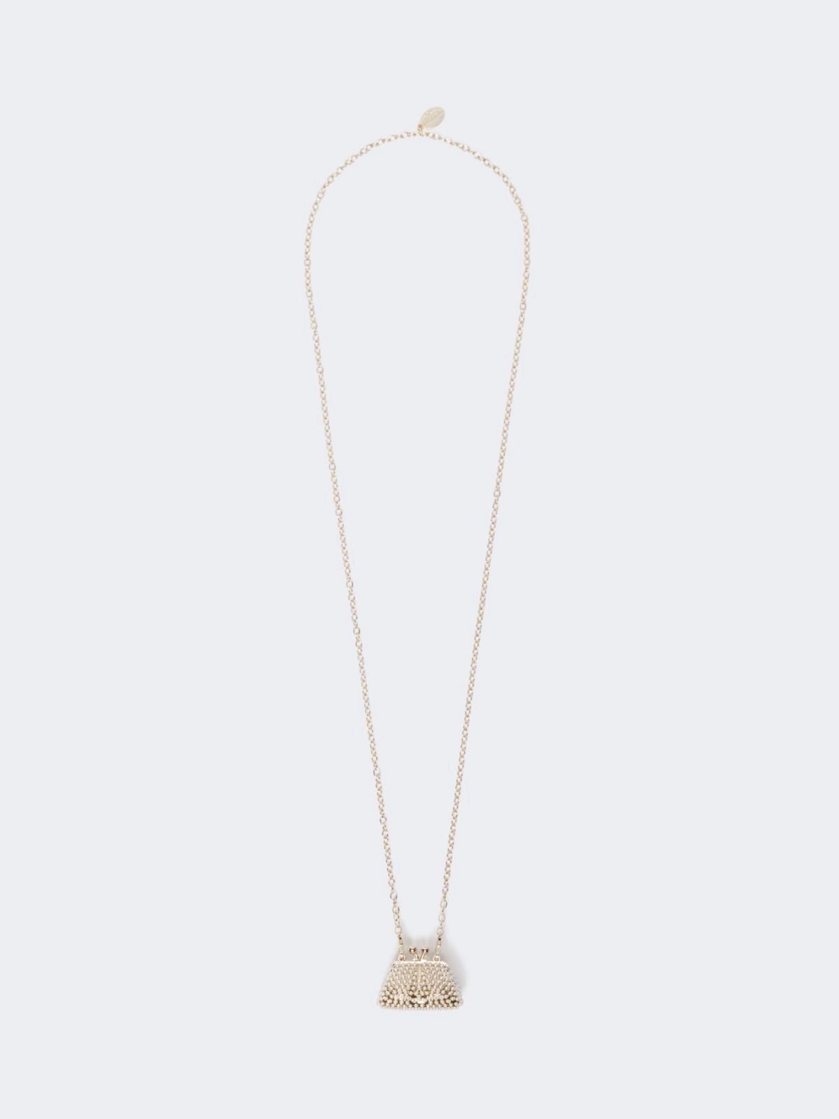 Chain necklace featuring a Pasticcino Bag-shaped pendant, complete with embedded micro pearl detail.