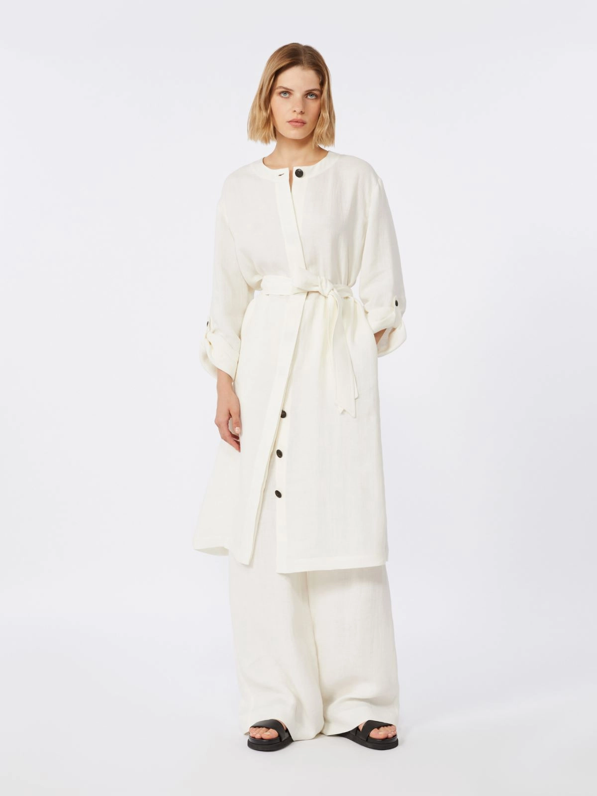 - Set-in sleeves with turned-up cuffs, secured by tab and button detail